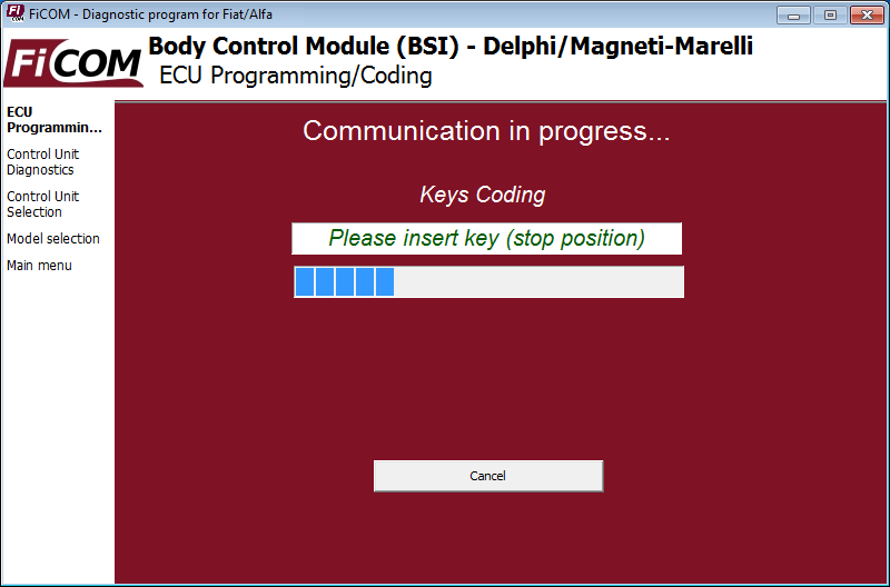 Προειδοποίηση: το κλειδί περιέχει προγραμματισμένα δεδομένα για ένα συγκεκριμένο όχημα (το κλειδί αντιπροσώπου), αυτό πρέπει να παραγγελθεί από τη Fiat ή να προγραμματιστεί εκ των προτέρων με ειδικά εργαλεία από το περιεχόμενο της EEPROM BSI.