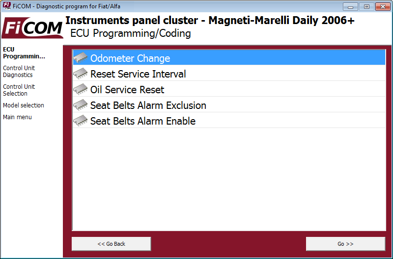 Η δυνατότητα «Αλλαγή χιλιομετρητή» βρίσκεται στο μενού «Προγραμματισμός/Κωδικοποίηση ECU» μετά τη σύνδεση με τη μονάδα ελέγχου του πίνακα οργάνων.
