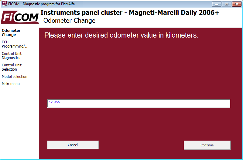 Θα σας ζητηθεί να εισαγάγετε την επιθυμητή τιμή (σε km) που θέλετε να ορίσετε σε χιλιομετρητή. Στη συνέχεια, πατήστε «Συνέχεια» για να ολοκληρώσετε τη λειτουργία κωδικοποίησης.