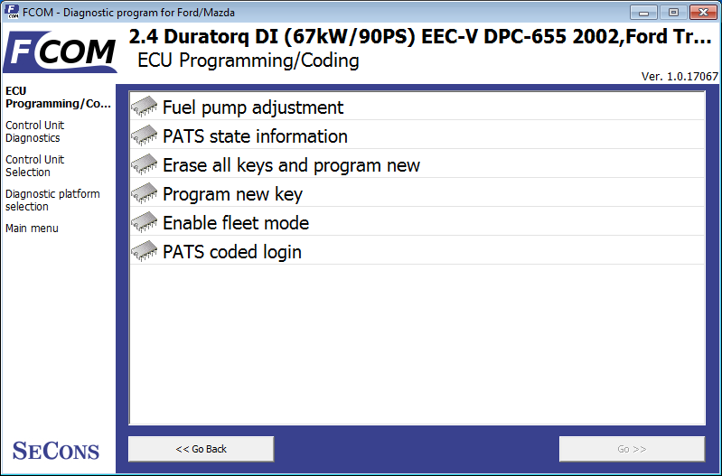 Για οχήματα που χρησιμοποιούν πολλαπλές ECU για σύστημα PATS (π.χ. PCM και IPC, BCM RKE ή SCIL), οι ECU πρέπει να περιέχουν τα ίδια δεδομένα ασφαλείας οχήματος. Για το σκοπό αυτό η FCOM παρέχει τη λειτουργία «PATS Pairing», η οποία είναι διαθέσιμο μενού κωδικοποίησης ECU εκτός PCM (IPC, BCM, SCIL ή RKE). Η λειτουργία είναι διαθέσιμη μόνο σε κωδικοποιημένα PATS.