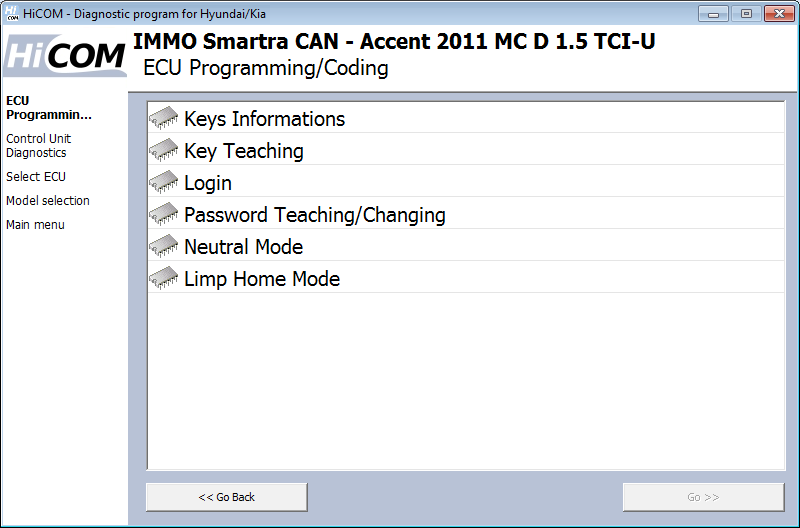 Επιλέξτε τη λειτουργία "Key Teaching" στο μενού "ECU Programming/Coding".