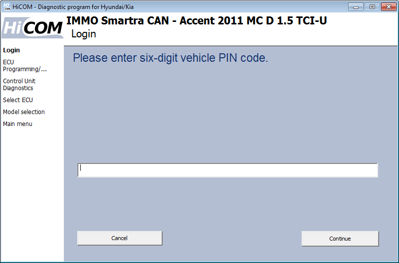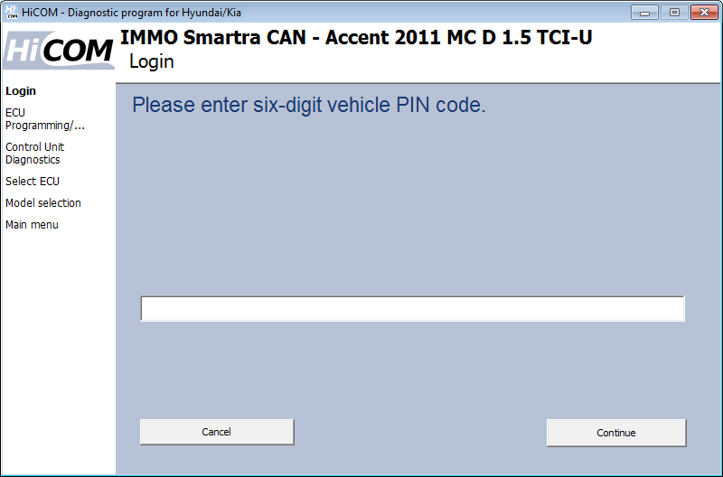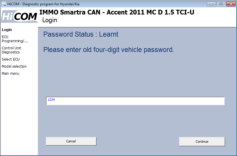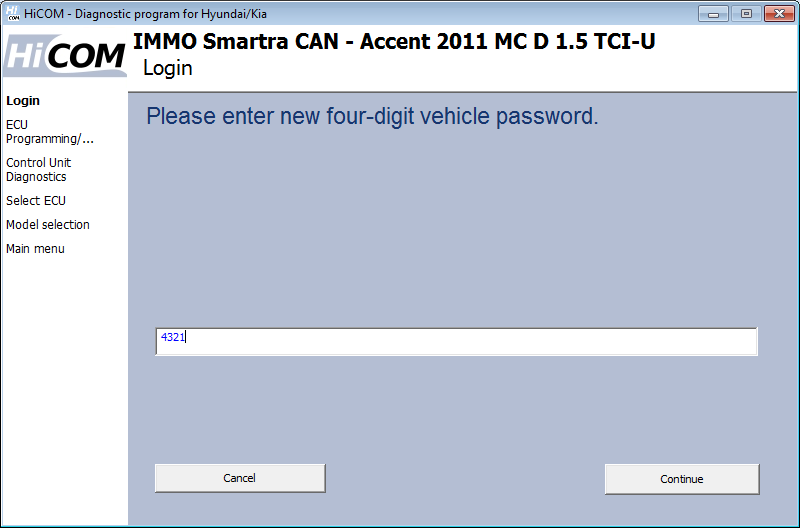 Θα σας ζητηθεί να εισαγάγετε κωδικό πρόσβασης, εάν η μονάδα ελέγχου δεν είναι "Virgin". Ο κωδικός είναι αριθμητικός και αποτελείται από 4 δεκαδικά ψηφία (π.χ. 1234). Όσον αφορά τη μονάδα ελέγχου Virgin, σας ζητείται απευθείας να ορίσετε έναν κωδικό πρόσβασης.
