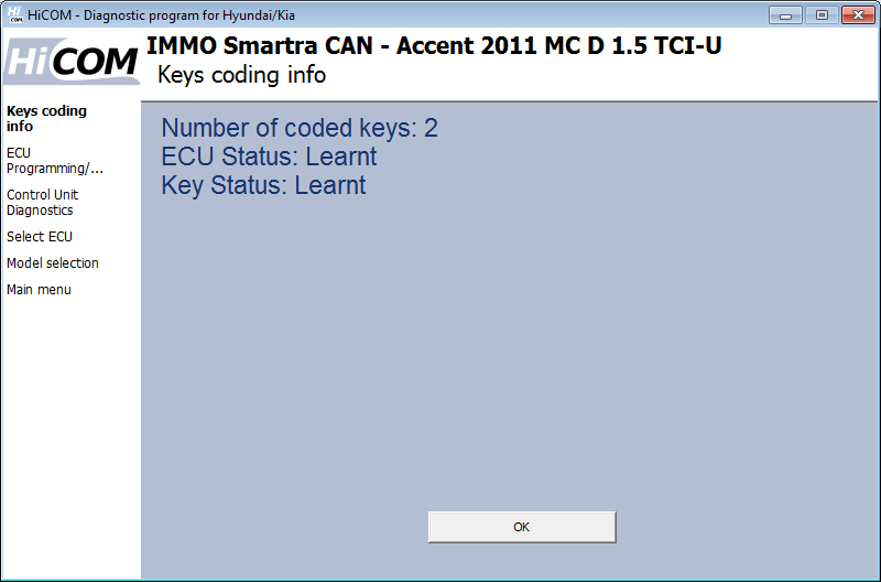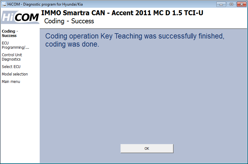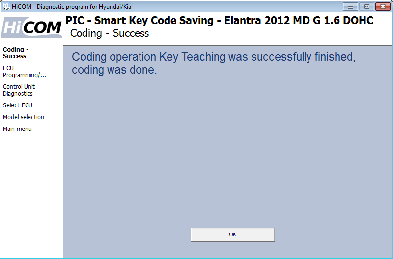 Αφού ολοκληρωθεί η λειτουργία κωδικοποίησης, το HiCOM εμφανίζει πληροφορίες σχετικά με την επιτυχή κωδικοποίηση.